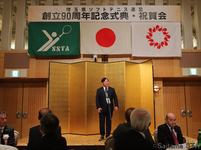 2026年1月24日(土)にTHE MARK GRAND HOTELにて埼玉県ソフトテニス連盟創立90周年記念式典が行われました。埼玉県スポーツ協会および日本ソフトテニス連盟の来賓の方よりご祝辞をいただき、連盟創立90周年功労者(186名)の表彰が行われました。 あわせて令和7年度定時表彰も行われ、各賞の代表者に症状・記念品が授与されました。式典終了後は祝賀会が開催され、恒例の抽選会に大いに盛り上がりました。参加者には埼玉県ソフトテニス連盟創立90周年記念誌と記念品が配布されました。